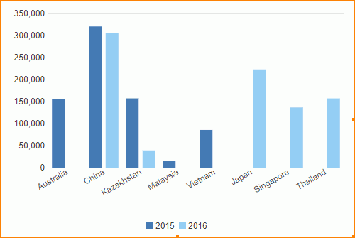 - Select Country. The chart now displays the data about countries in the Asia Pacific region.